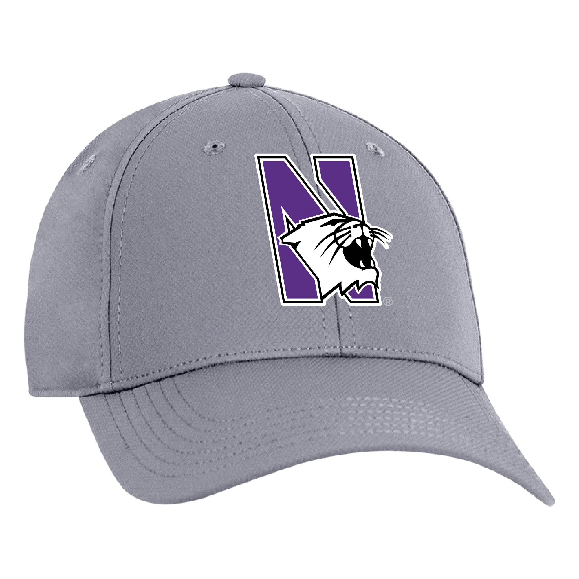Northwestern University Wildcats Ahead Constructed Performance Light Grey Velcro Back Hat with N-Cat Design quantity