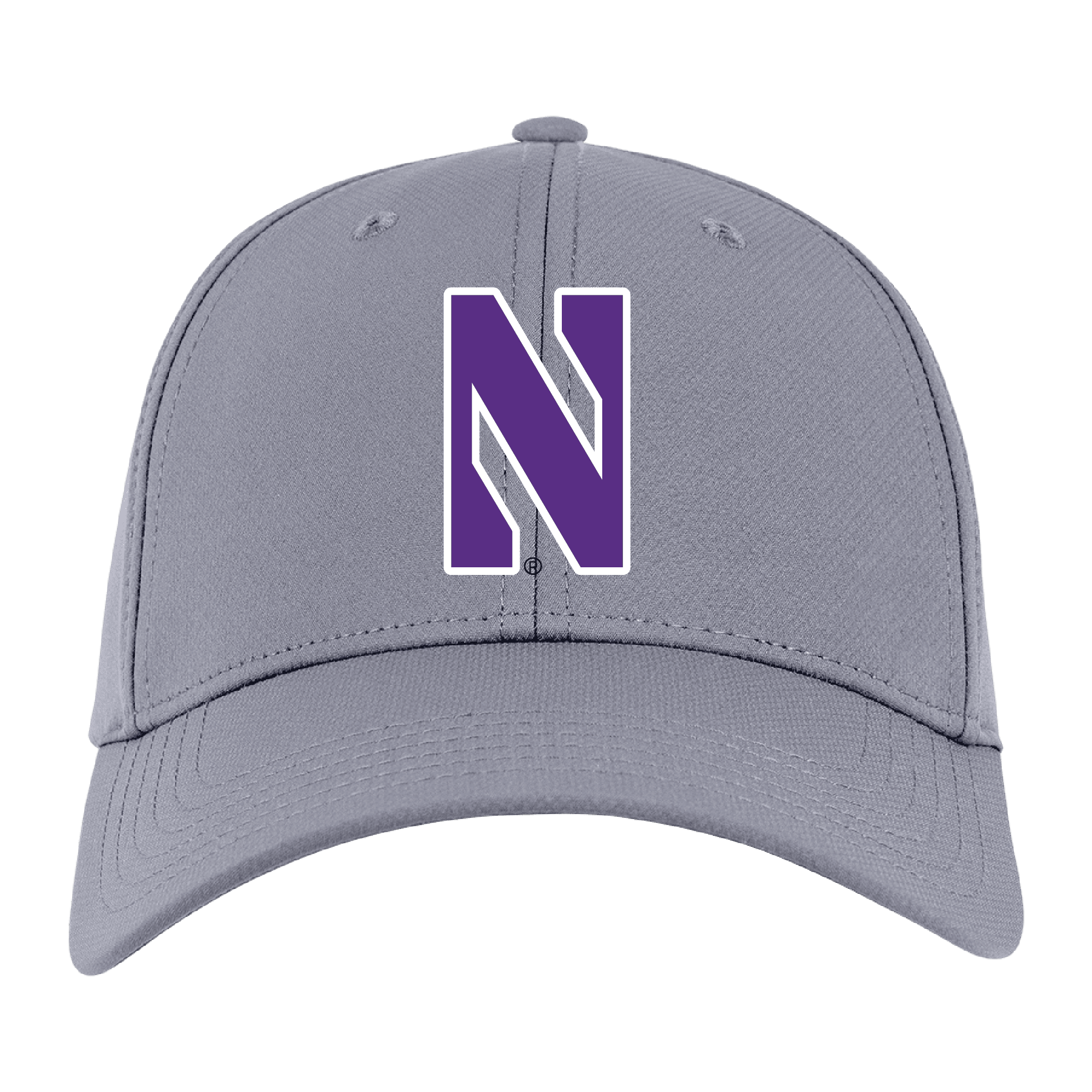 Northwestern University Wildcats Ahead Constructed Performance Light Grey Velcro Back Hat with Stylized N Design quantity
