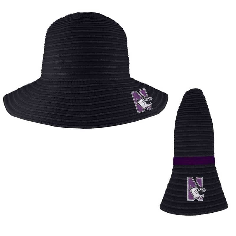 Northwestern University Wildcats Amelia Black Collapsible Travel Sun Hat With Accent Hair Band