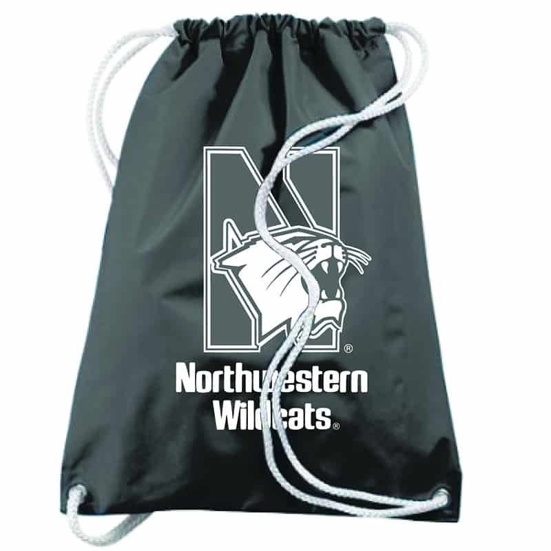 Northwestern University Wildcats Augusta Sportswear Large Black Draw String Back Pack with N-Cat Design