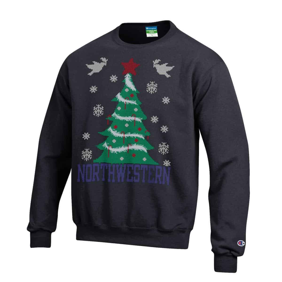 Northwestern University Wildcats Black Christmas Sweatshirt With Tree Design