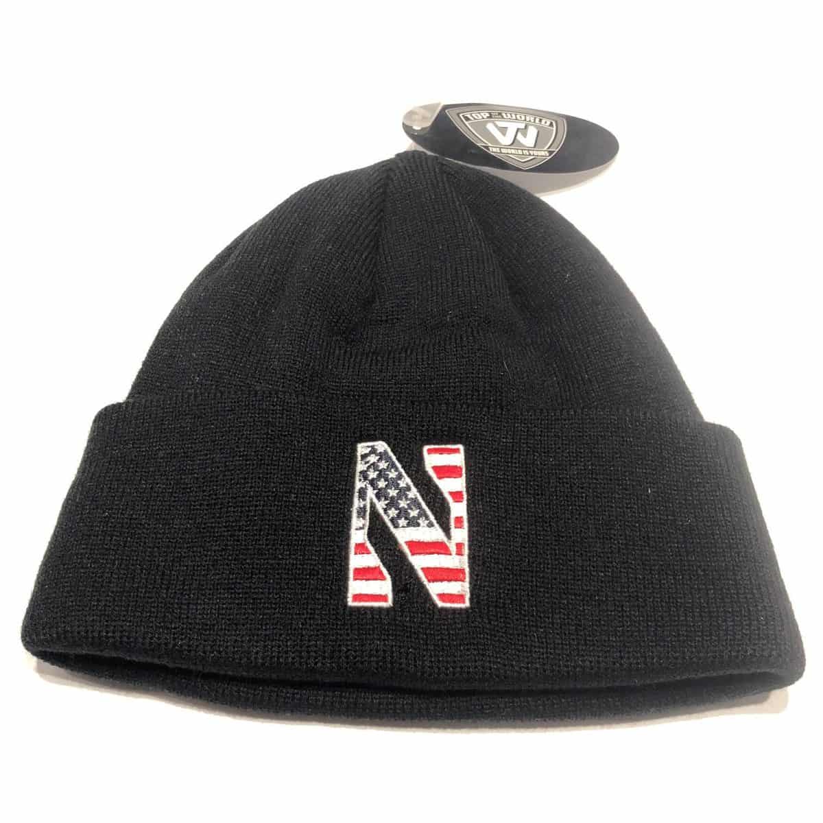 Northwestern University Wildcats Black Cuffed Knit Hat with Stars & Stripes Stylized N Design quantity