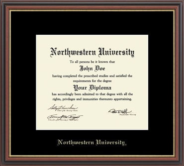 Northwestern University Wildcats Black Matted Williamsburg Diploma Frame With Gold Accent & Gold Embossed Northwestern University Design quantity