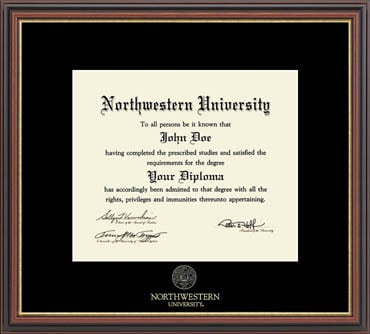 Northwestern University Wildcats Black Matted Williamsburg Diploma Frame With Gold Accent & Gold Embossed Northwestern University Seal Design