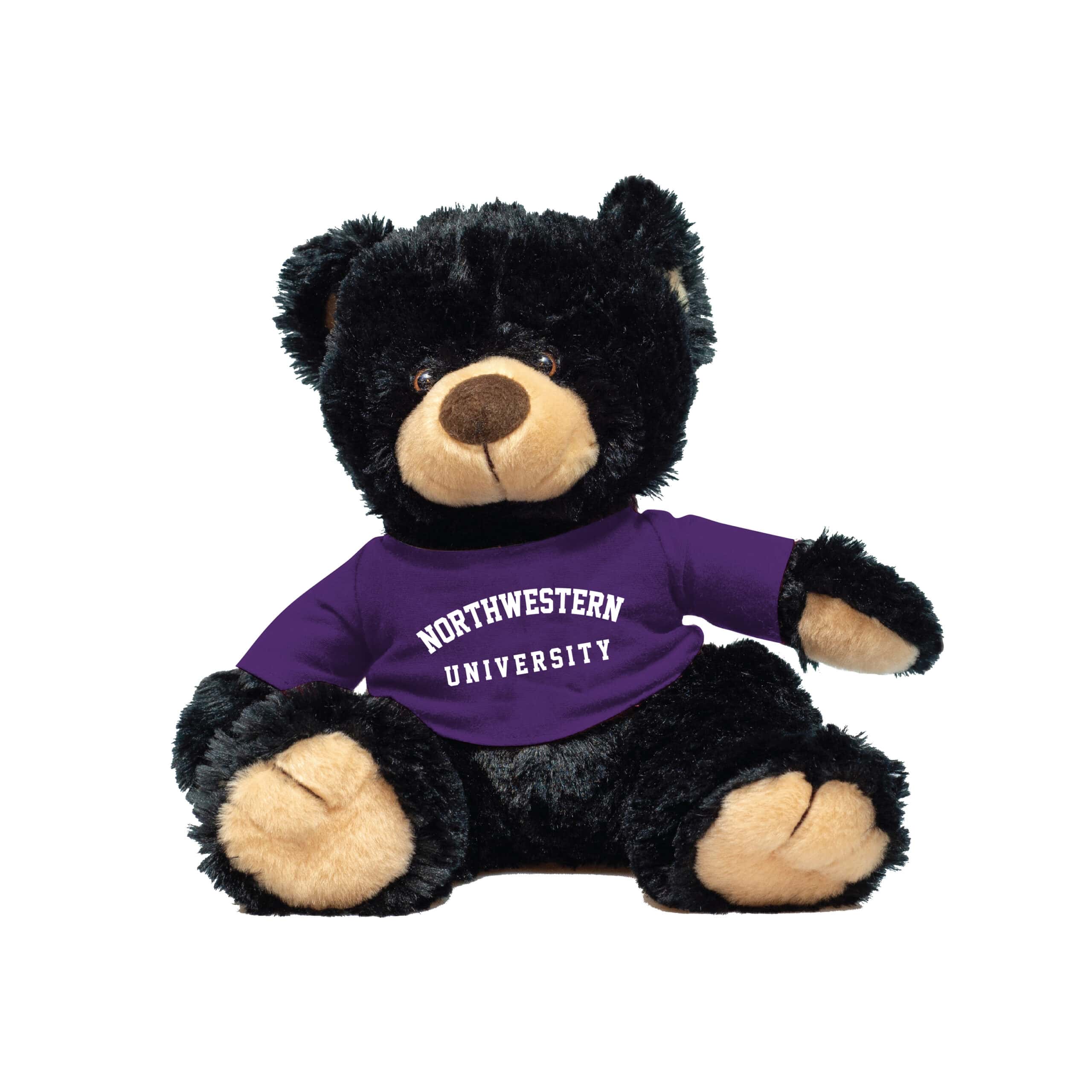 Northwestern University Wildcats Black Noah Teddy Bear Wearing Purple “Northwestern University” Tee Shirt