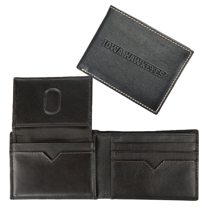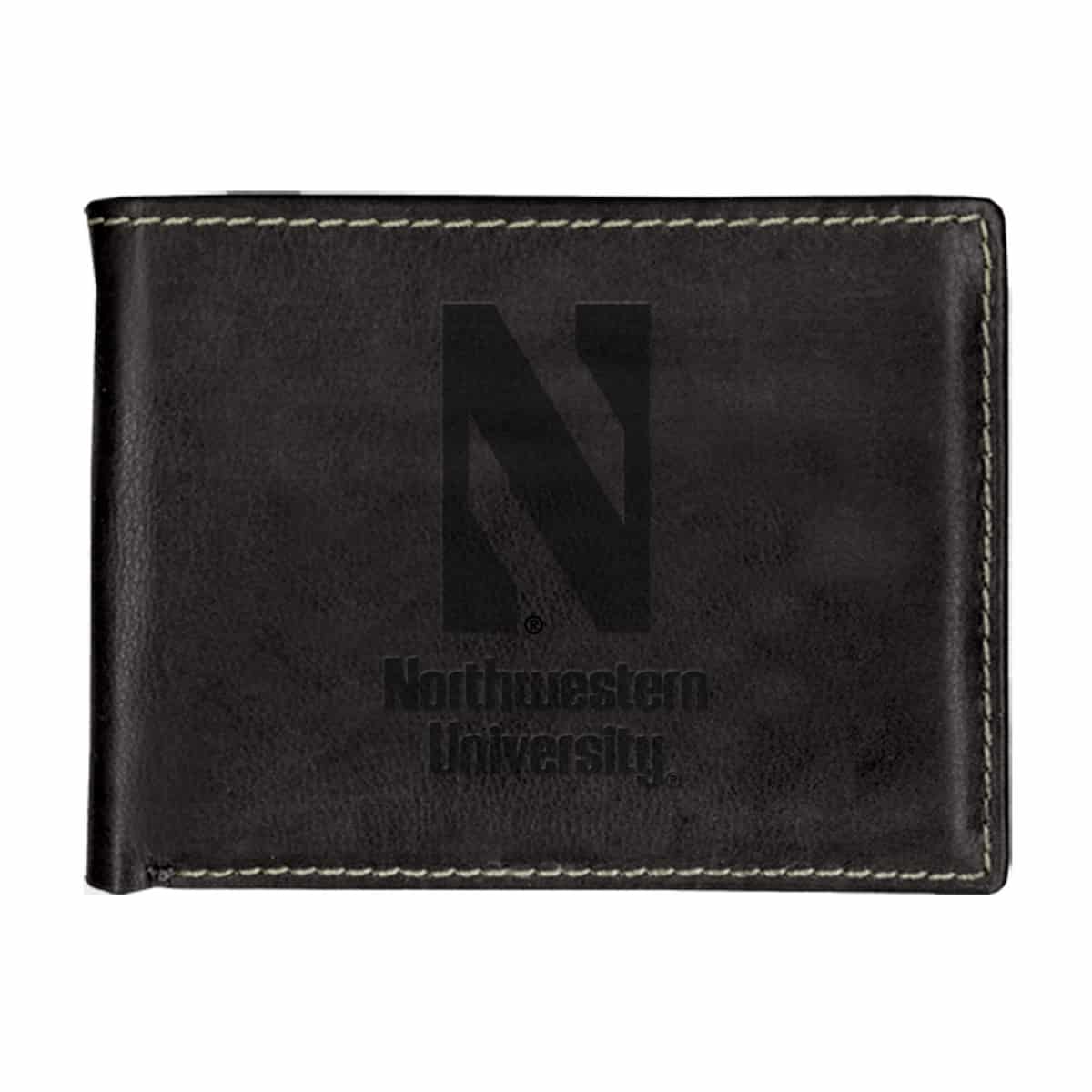 Northwestern University Wildcats Black Onyx Contrast Stitch Genuine Leather Billfold Wallet