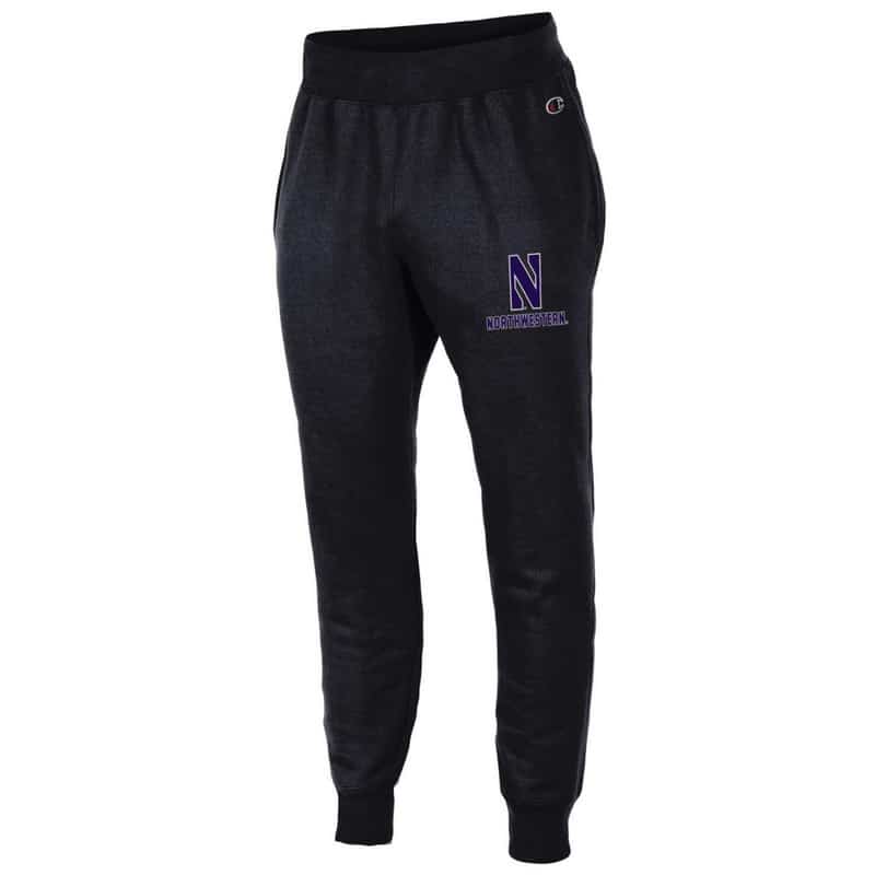 Northwestern University Wildcats Champion Men’s Black Super Heavy Weight Reverse Weave Jogger Pant With Stylized N over Northwestern Design