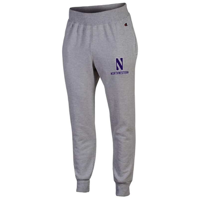 Northwestern University Wildcats Champion Men’s Oxford Heather Super Heavy Weight Reverse Weave Jogger Pant With Stylized N over Northwestern Design
