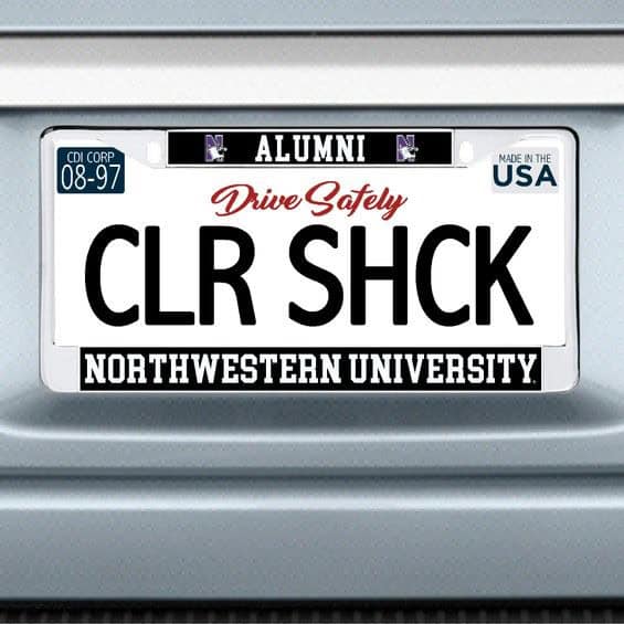 Northwestern University Wildcats Chrome License Plate Frame with Black Laser Cut N-Cat Alumni N-Cat/Northwestern University Inserts