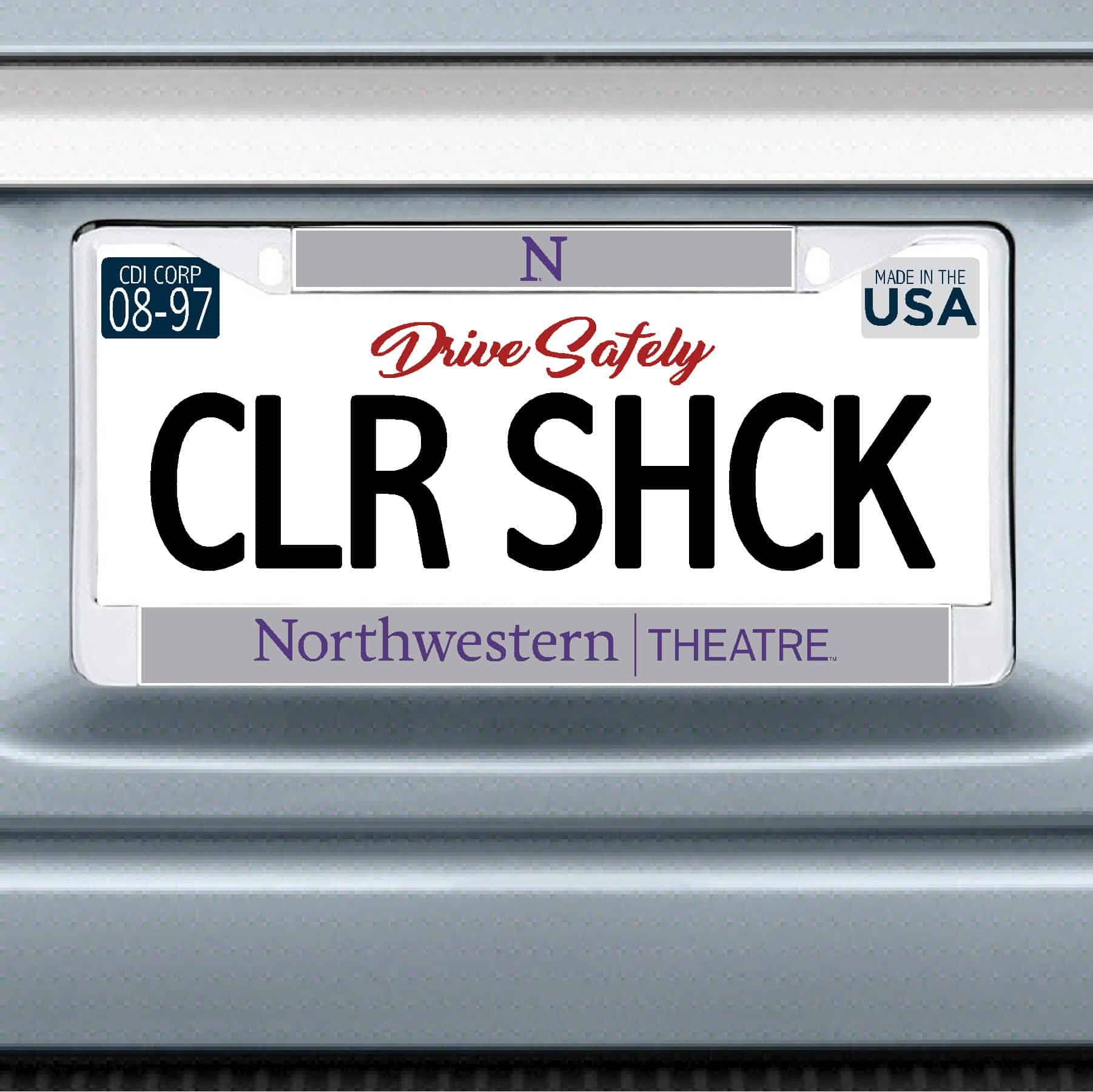 Northwestern University Wildcats Chrome License Plate Frame with Grey Laser Cut Northwestern/Theatre Insert