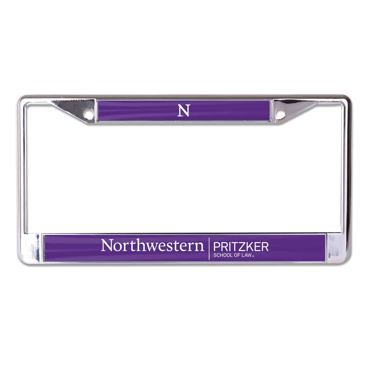 Northwestern University Wildcats Chrome License Plate Frame with Laser Cut Purple Insert & Pritzker School of Law Design