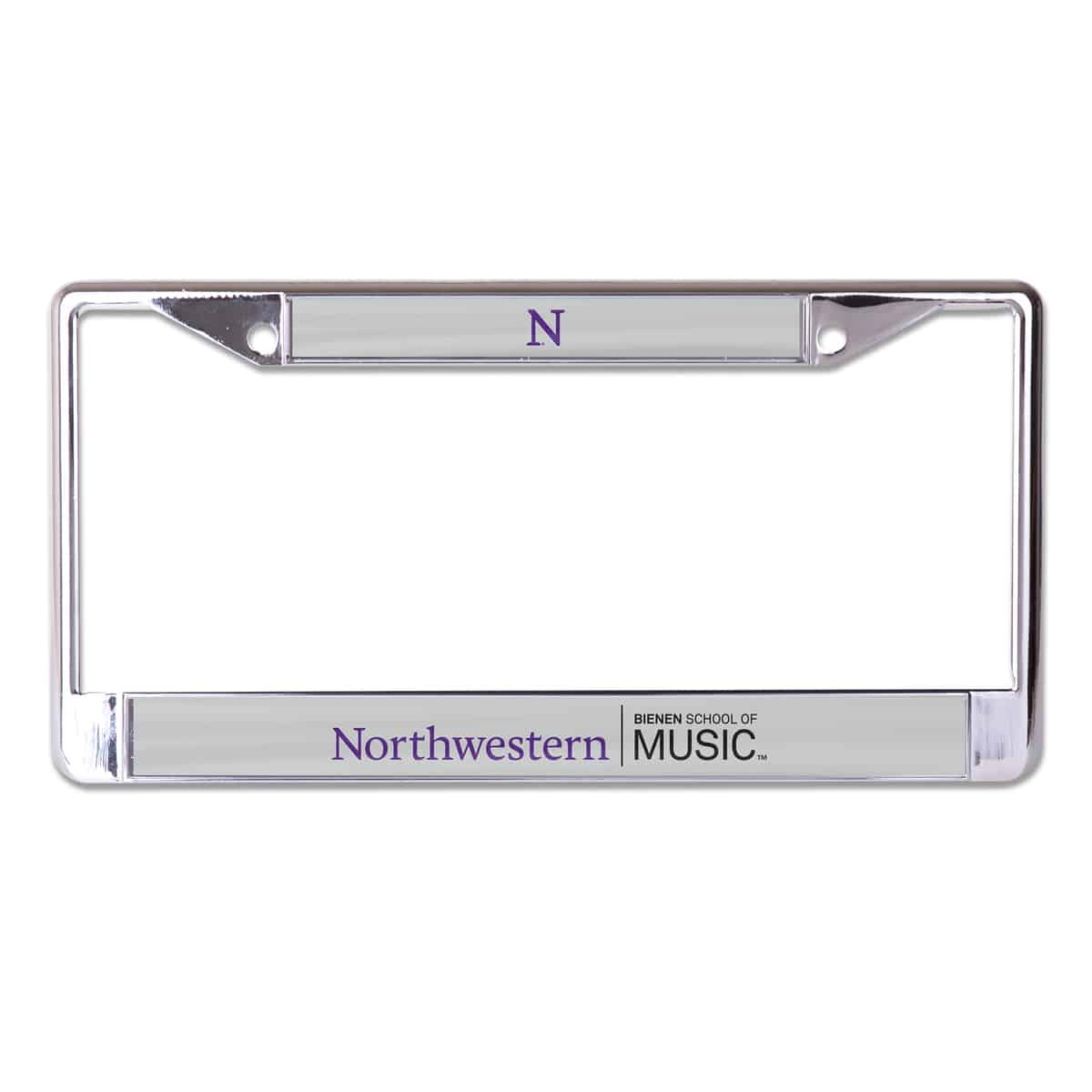 Northwestern University Wildcats Chrome License Plate Frame with Northwestern/Bienen School of Music On a Grey Insert
