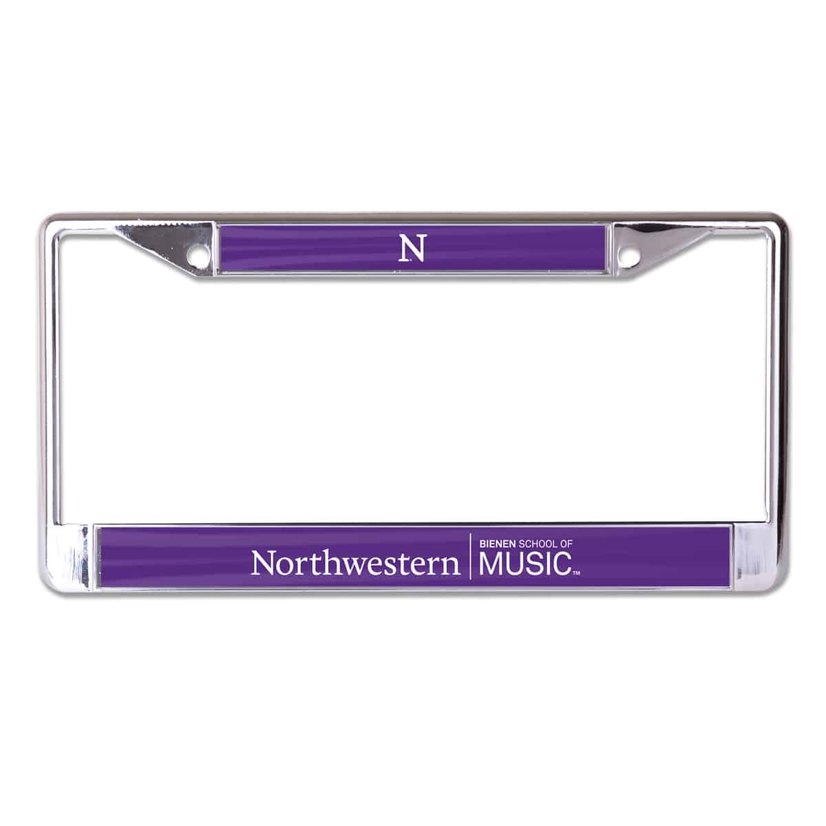 Northwestern University Wildcats Chrome License Plate Frame with Northwestern/Bienen School of Music On a Purple Insert