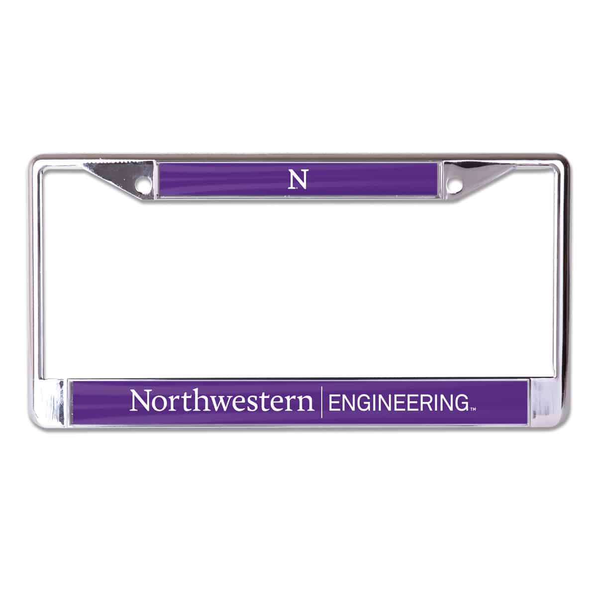 Northwestern University Wildcats Chrome License Plate Frame with Northwestern/Engineering On A Purple Insert
