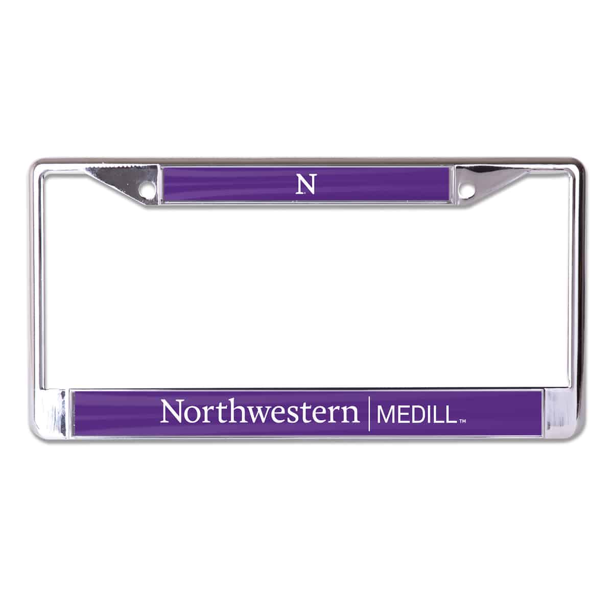 Northwestern University Wildcats Chrome License Plate Frame with Purple Laser Cut Northwestern/Medill Insert