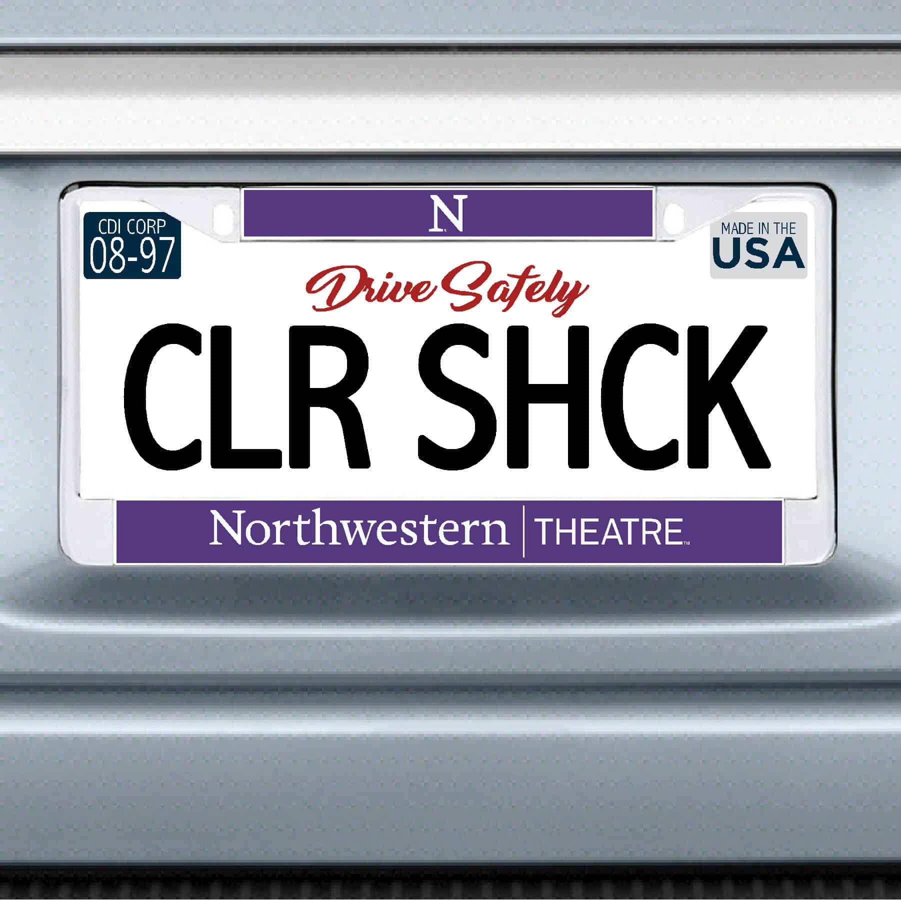 Northwestern University Wildcats Chrome License Plate Frame with Purple Laser Cut Northwestern/Theatre Insert