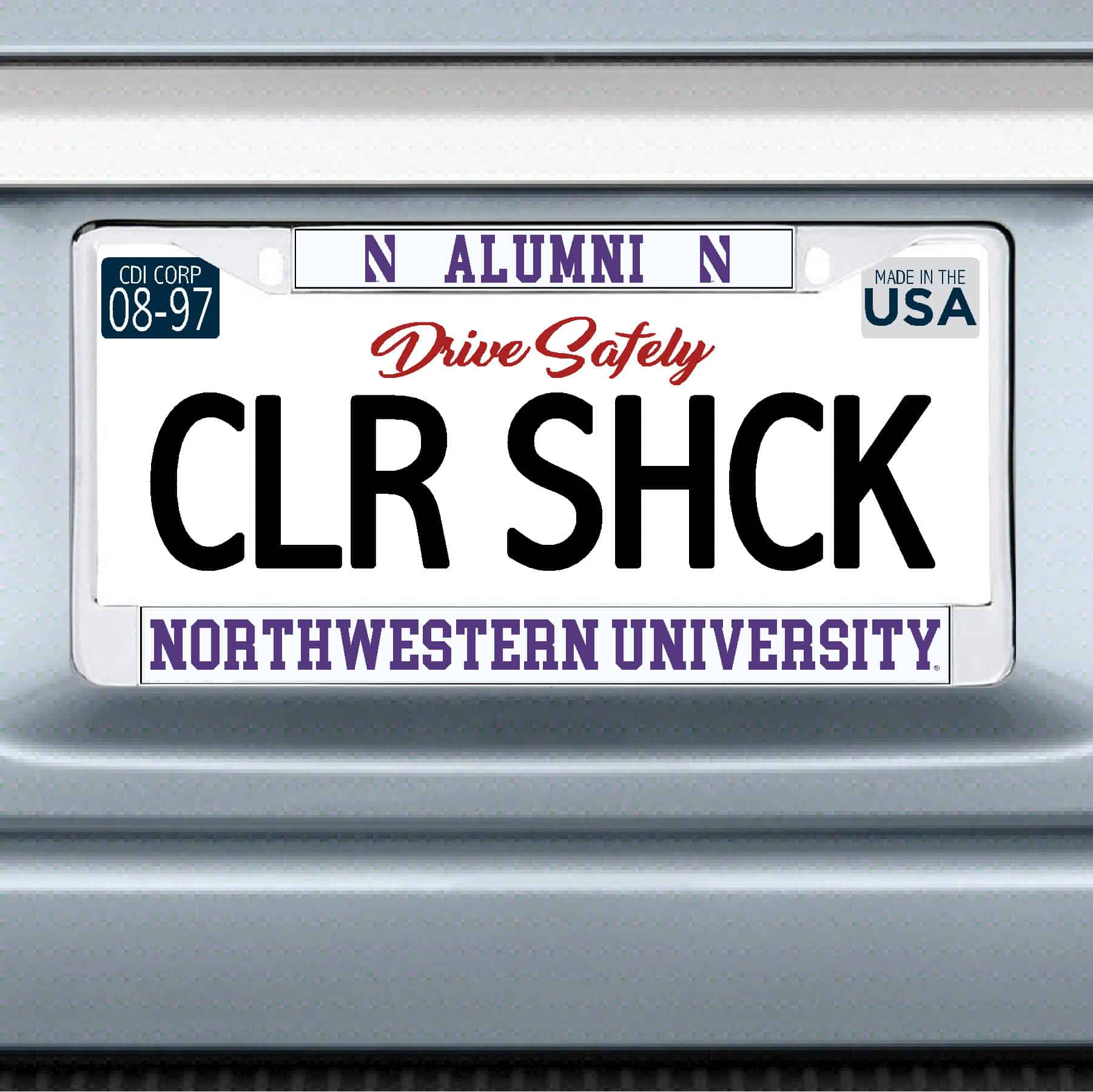 Northwestern University Wildcats Chrome License Plate Frame with Laser Cut Acrylic Purple Alumni Northwestern University Insert