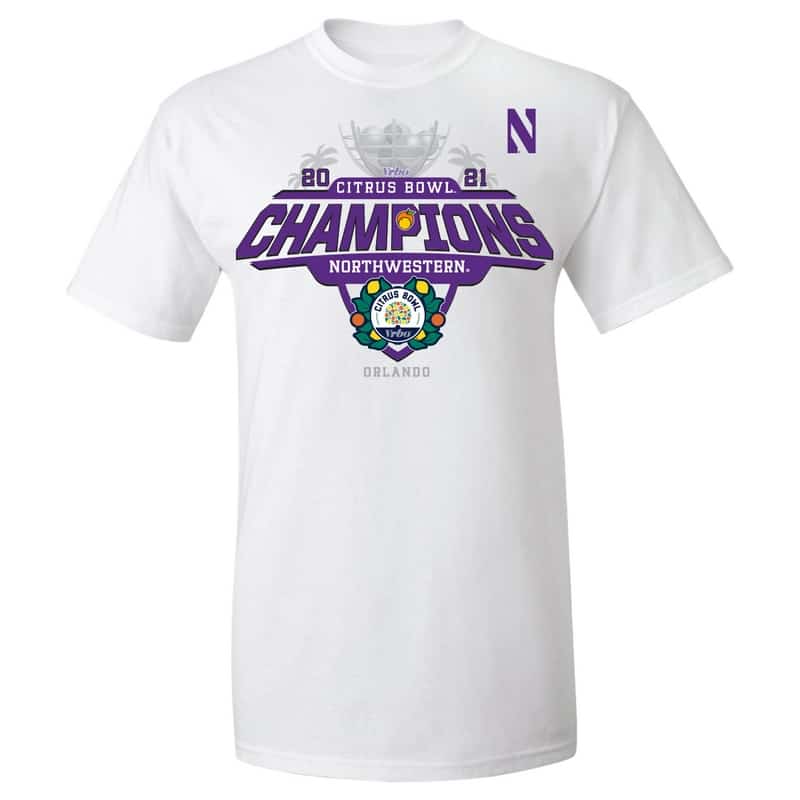 Northwestern University Wildcats Citrus Bowl 2021 Champions Official Locker Room Short Sleeve Tee Shirt