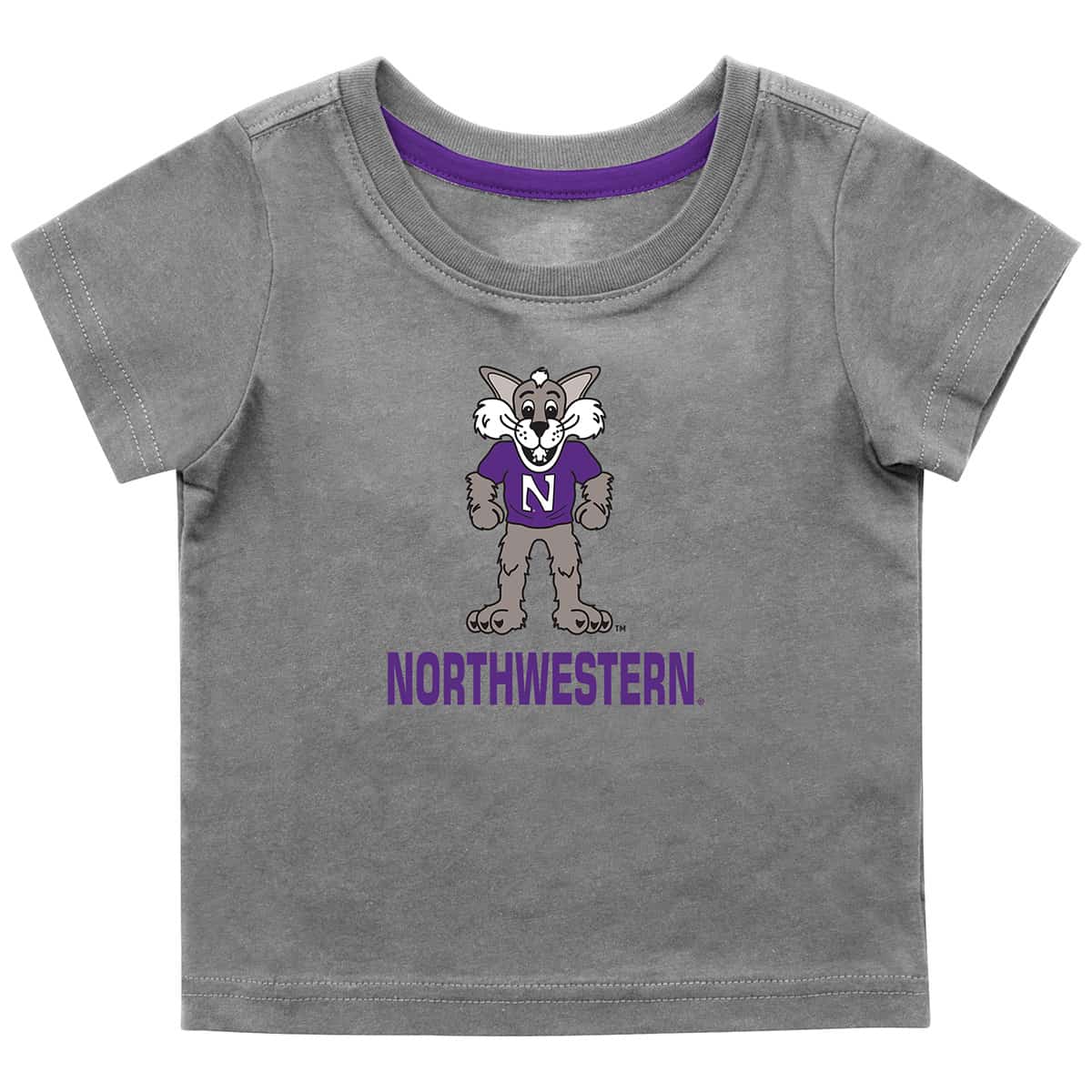 Northwestern University Wildcats Colosseum Infant Boys Gray S/S T-Shirt with Willie The Cat Over Northwestern quantity
