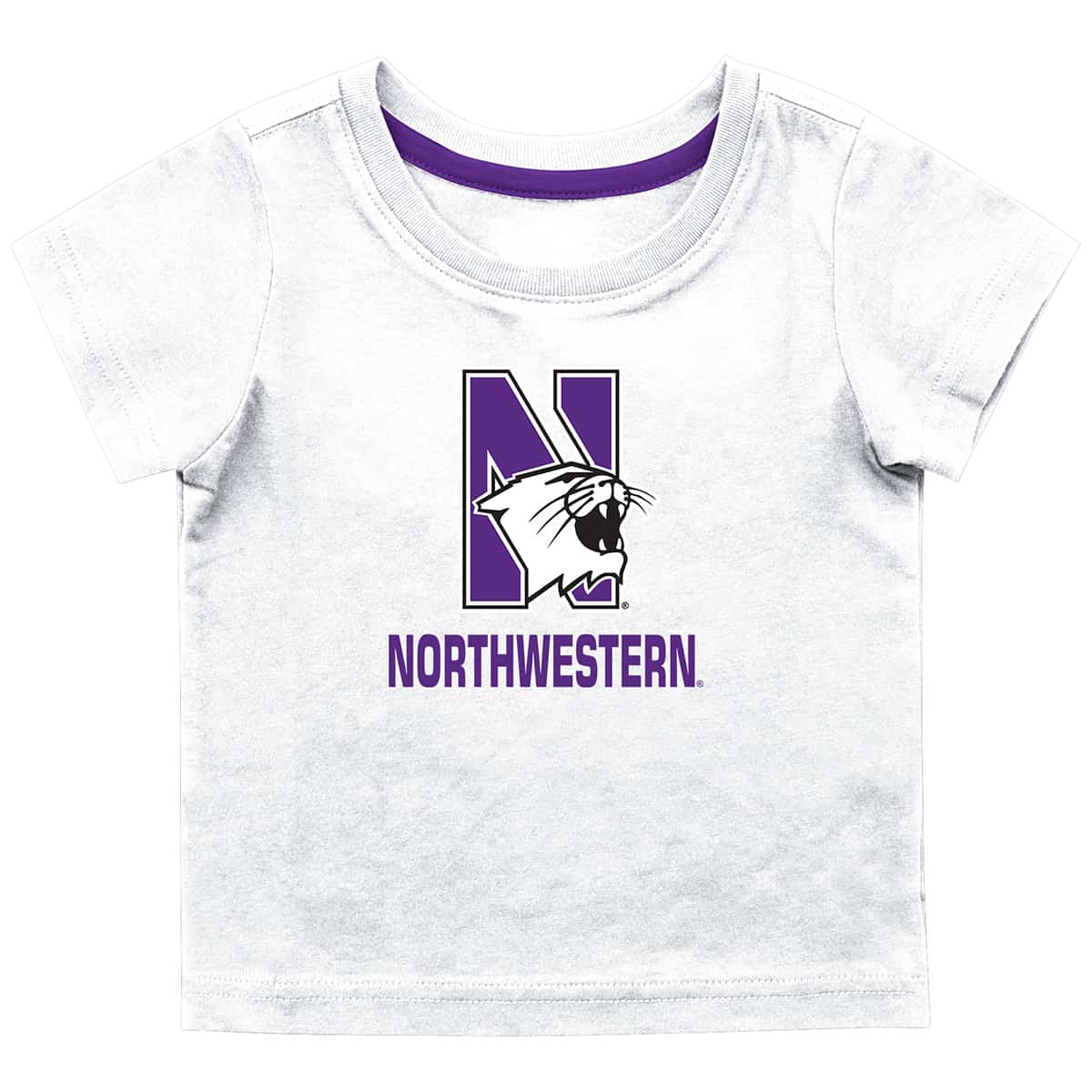 Northwestern University Wildcats Colosseum Infant Boys White S/S T-Shirt with N-Cat Over Northwestern