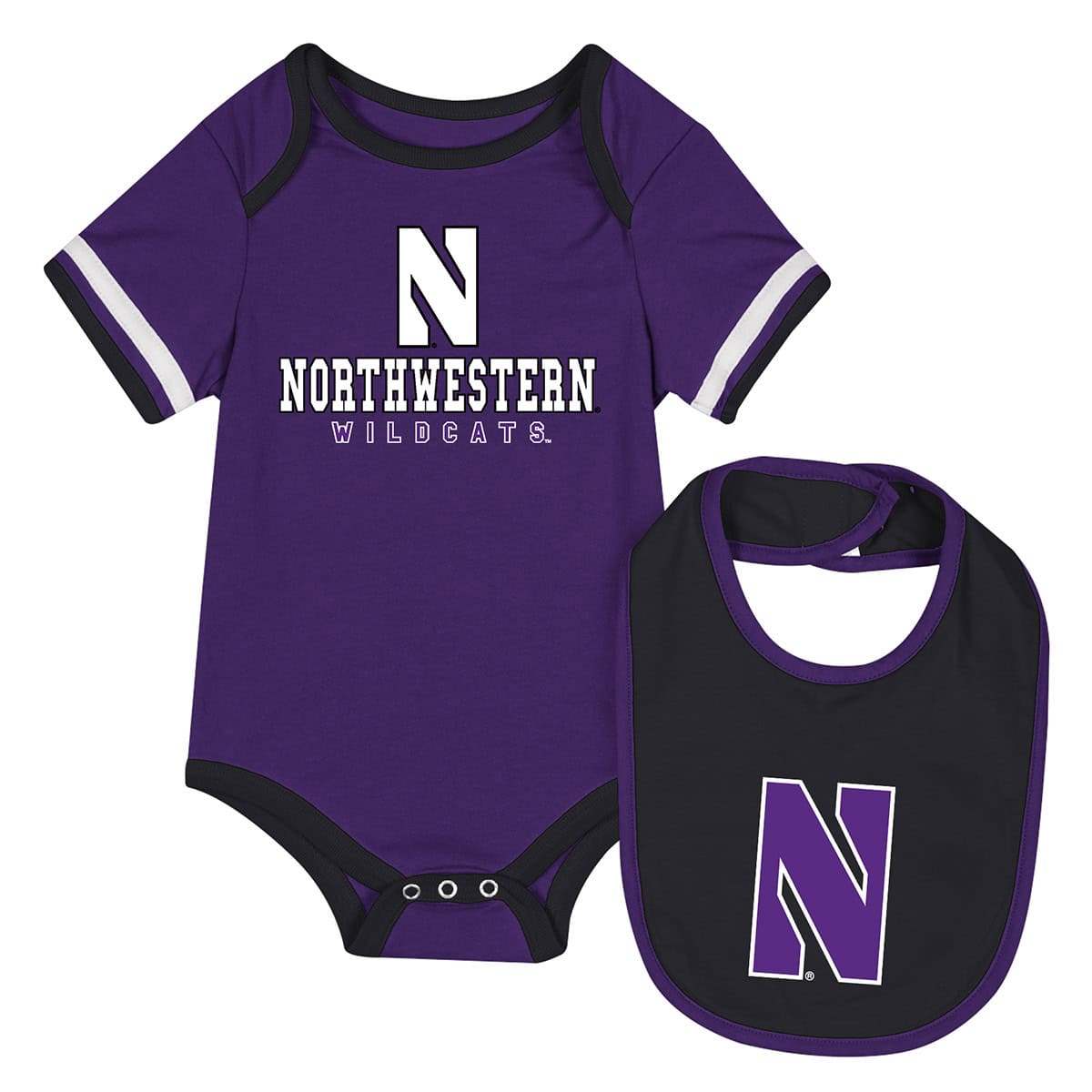 Northwestern University Wildcats Colosseum Infant The Gift Purple Onesie And Bib with N Design