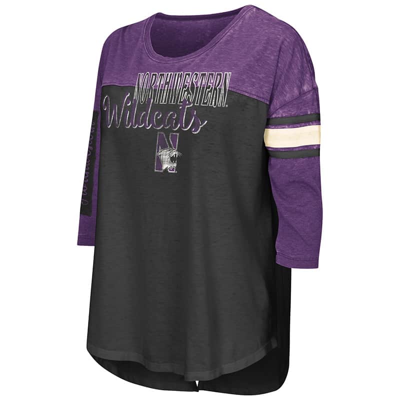 Northwestern University Wildcats Colosseum Ladies Black / Purple I’Ll Be There For You 3/4 Sleeve T-Shirt with N-Cat Design