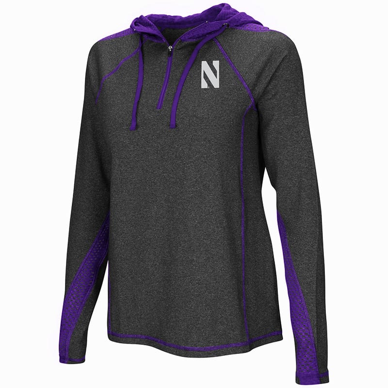 Northwestern University Wildcats Colosseum Ladies Heather Charcoal/Purple Evelyn 1/4 Zip Hoodie with Stylized N Design