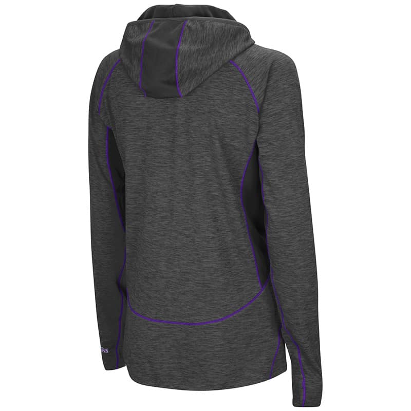 Northwestern University Wildcats Colosseum Ladies Heather Charcoal / Solid Charcoal Capo Ferro 1/4 Hooded Windshirt with N-Cat Design