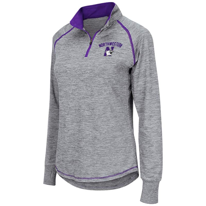 Northwestern University Wildcats Colosseum Ladies Light Grey Athena 1/4 Zip with N-Cat Design
