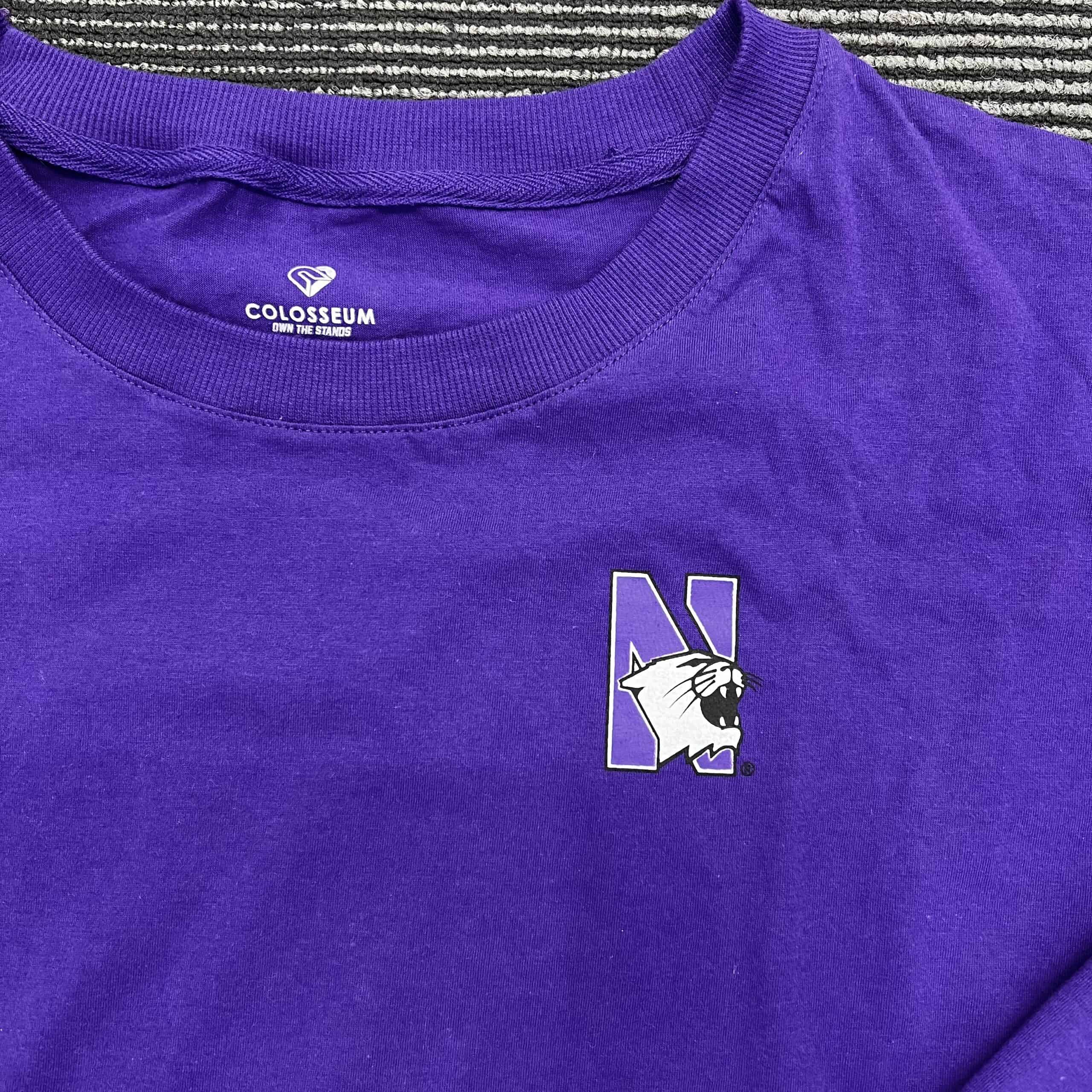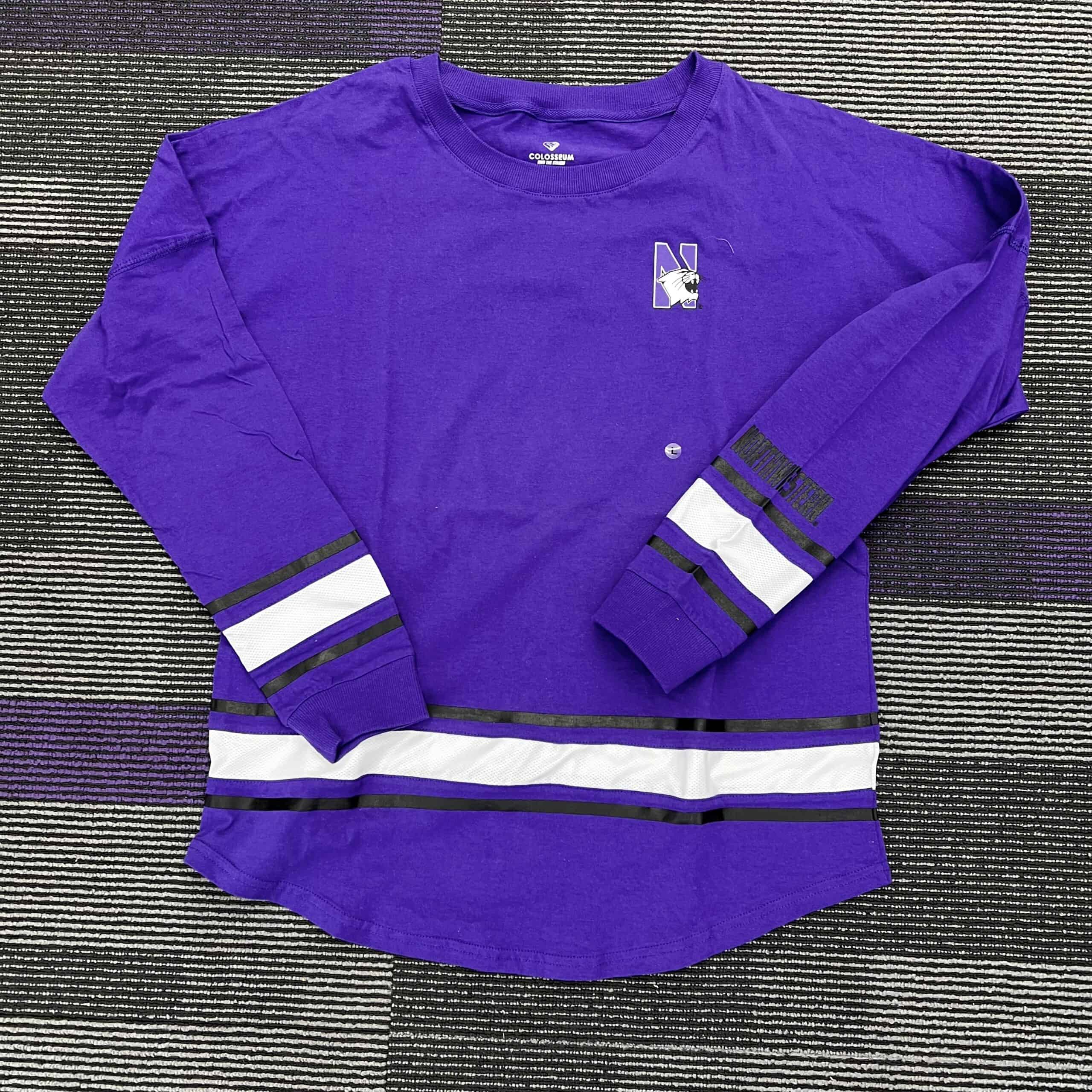 Northwestern University Wildcats Colosseum Ladies Purple All Around Oversized L/S Top with N-Cat Design