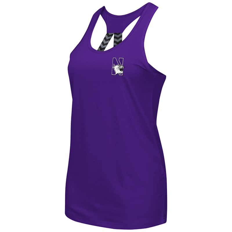 Northwestern University Wildcats Colosseum Ladies Purple Bamboozled Elastic Strap Tank with N-Cat Design