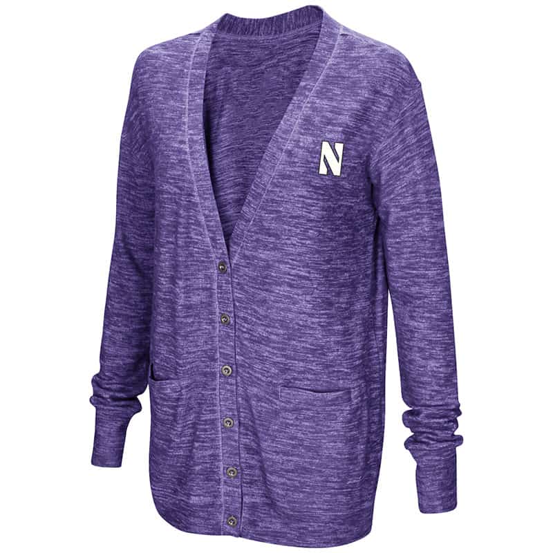 Northwestern University Wildcats Colosseum Ladies Purple Had Me At Hello Cardigan with N-Cat Design