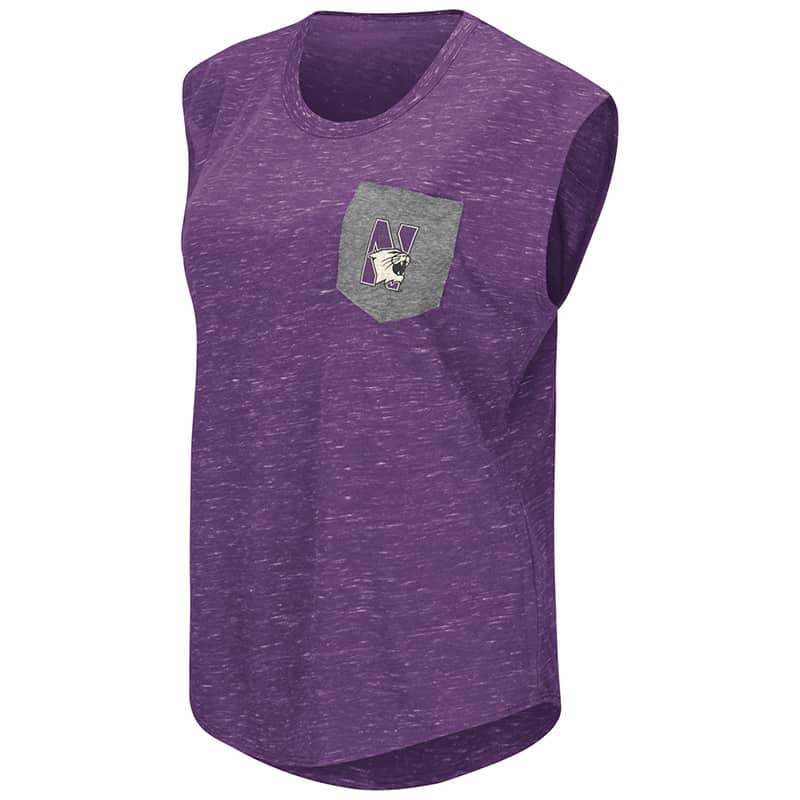 Northwestern University Wildcats Colosseum Ladies Purple / Heather Grey Moo Point Pocket T-Shirt with N-Cat Design