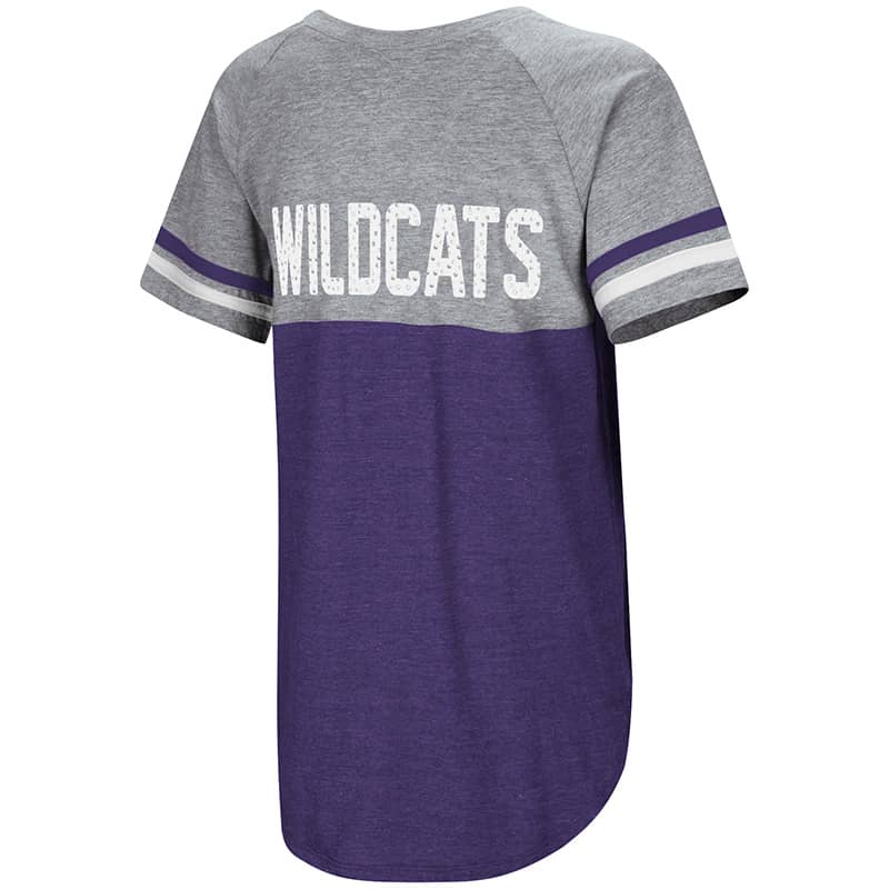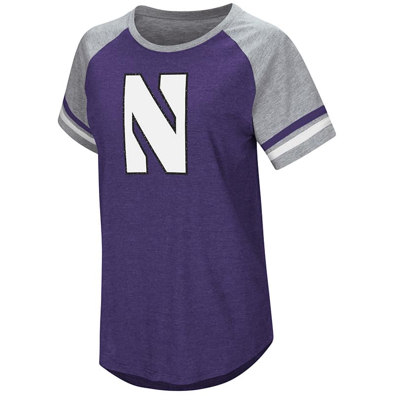 Northwestern University Wildcats Colosseum Ladies Purple/Heather Grey Southbend Blue Sox Oversized S/S T-Shirt with Stylized N Design