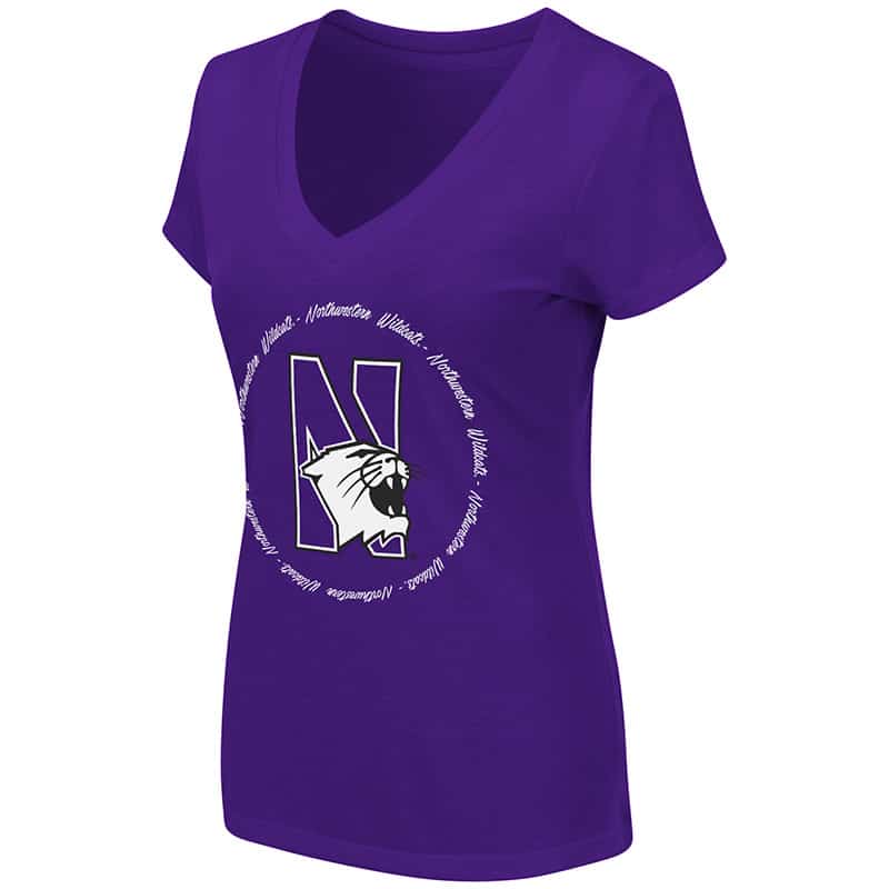 Northwestern University Wildcats Colosseum Ladies Purple Parma V-Neck T-Shirt with N-Cat Design
