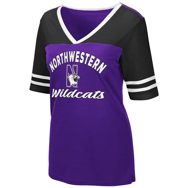 Northwestern University Wildcats Colosseum Ladies Samantha V-Neck S/S Tee with N-Cat Design