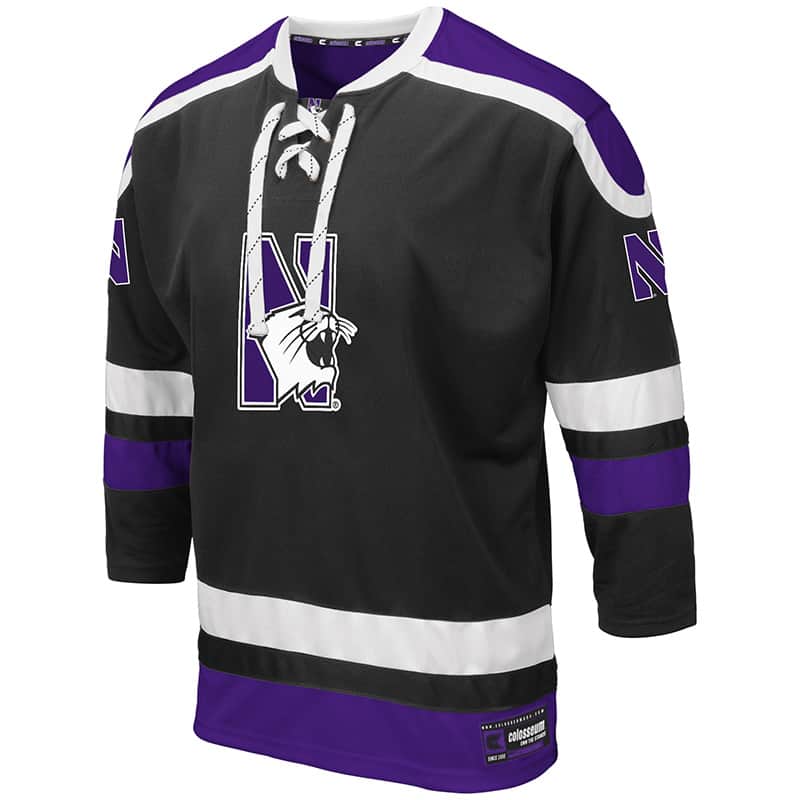 Northwestern University Wildcats Colosseum Men’s Black Mr. Plow Hockey Jersey with N-Cat Design