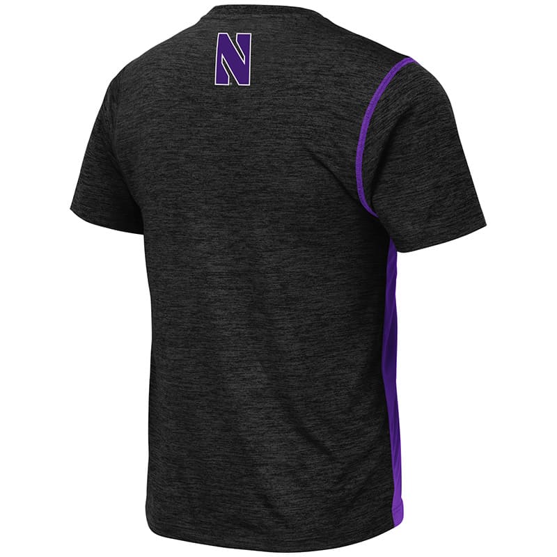 Northwestern University Wildcats Colosseum Men’s Black/Purple Pop Color Tonga S/S T-Shirt with N-Cat Design
