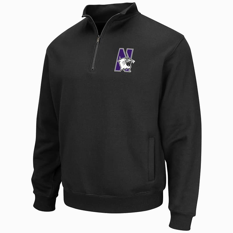 Northwestern University Wildcats Colosseum Men’s Black VF 1/4 Zip Sweatshirt with N-Cat Design