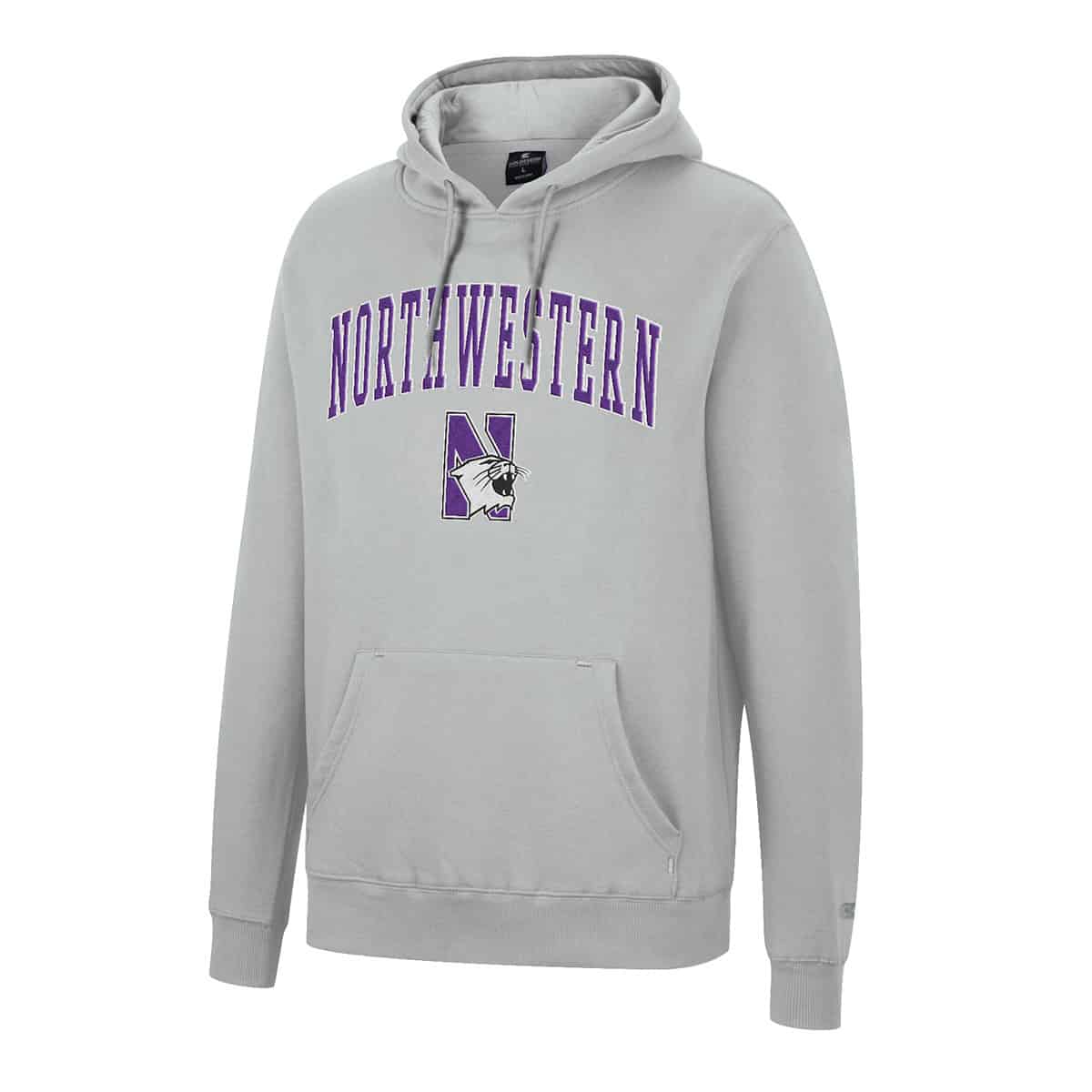 Northwestern University Wildcats Colosseum Men’s Grey Scholarship Hoodie With Northwestern and N-Cat Design