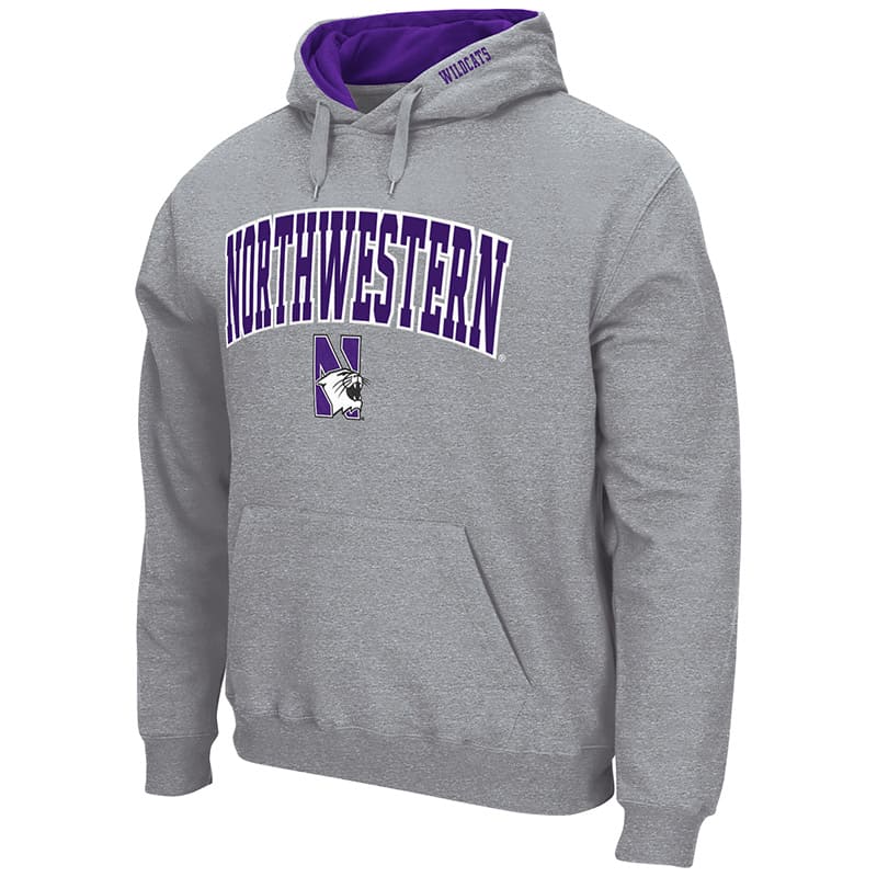 Northwestern University Wildcats Colosseum Men’s Grey VF Pullover Hooded Sweatshirt with Arch & N-Cat Design