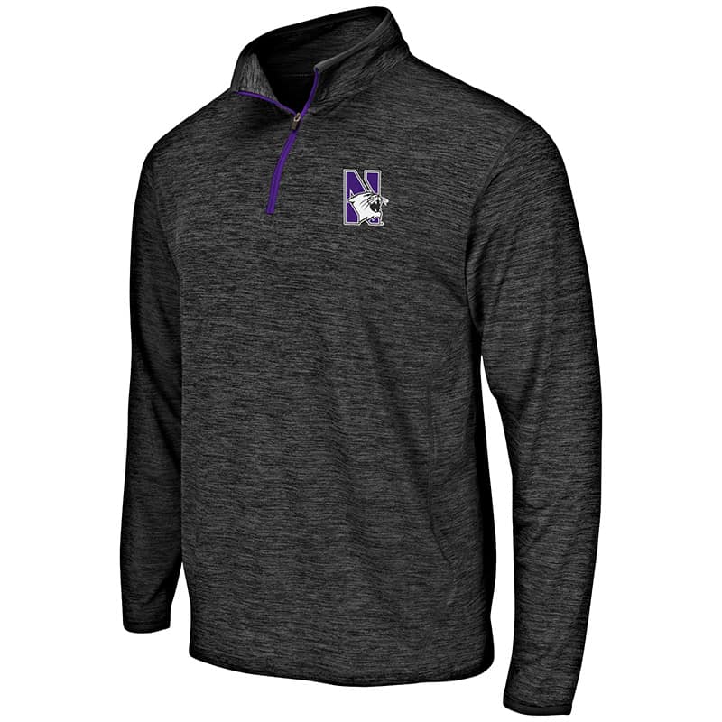 Northwestern University Wildcats Colosseum Men’s Heather Black Action Pass L/S 1/4 Zip with N-Cat Design