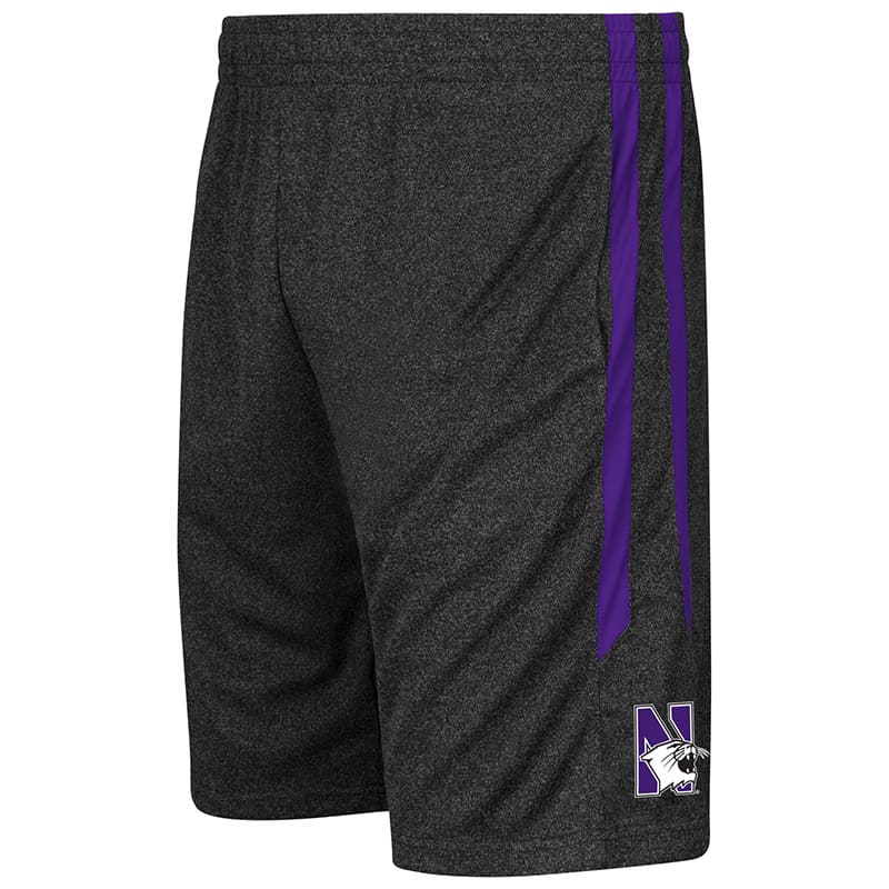 Northwestern University Wildcats Colosseum men’s Heather Black Sidler Short with N-Cat Design
