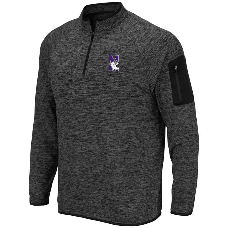 Northwestern University Wildcats Colosseum Men’s Heather Charcoal 1/4 Zip with N-Cat Designwith N-Cat Design