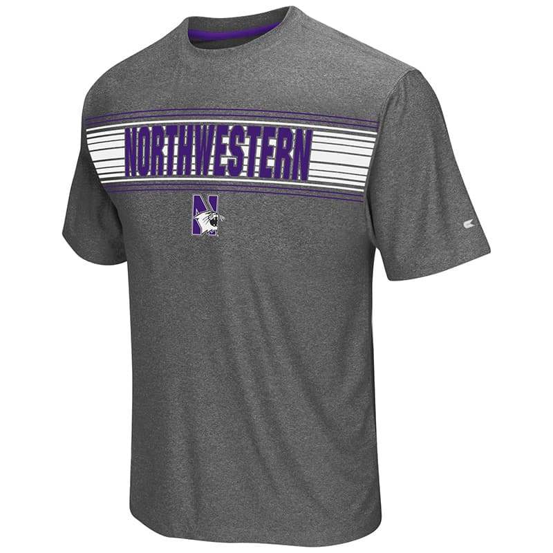 Northwestern University Wildcats Colosseum Men’s Heather Charcoal Vandelay S/S T-Shirt with N-Cat Design