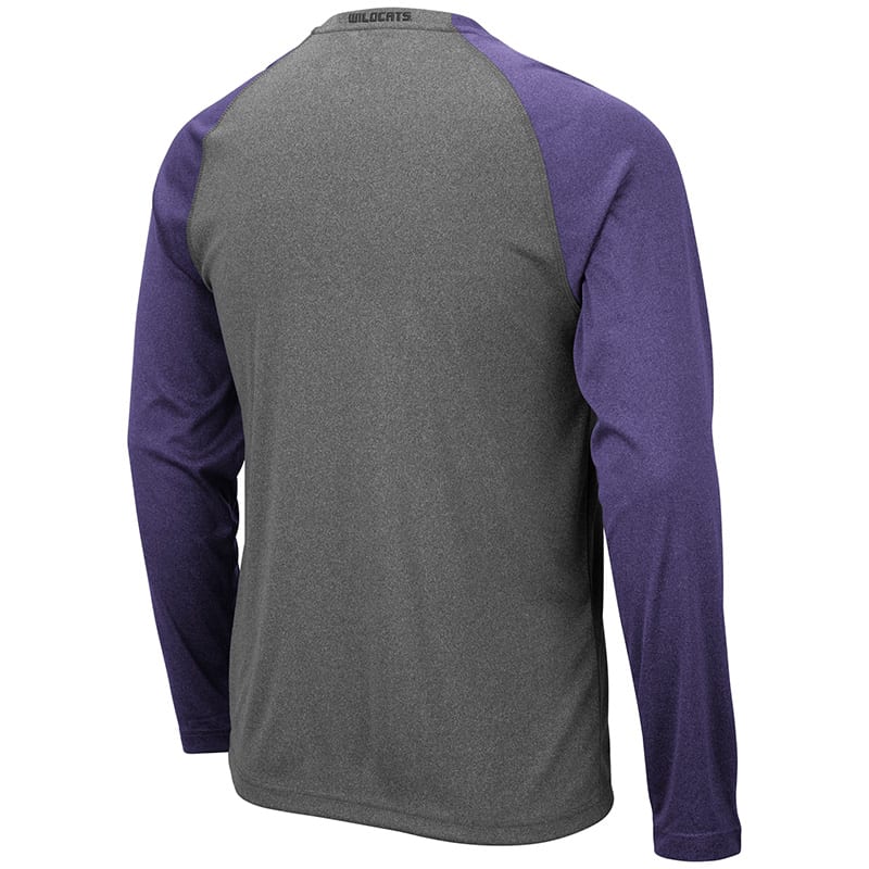 Northwestern University Wildcats Colosseum Men’s Heather Grey/Purple Rad Tad Raglan L/S T-Shirt with Stylized N Design