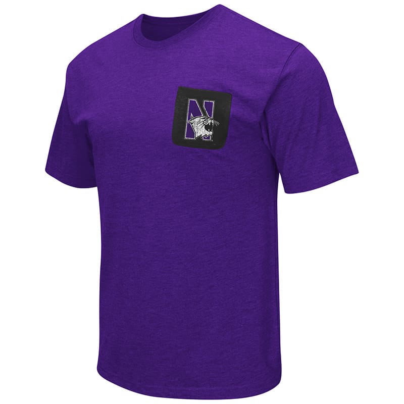 Northwestern University Wildcats Colosseum Men’s Purple Banya S/S Pocket T-Shirt with N-Cat Design