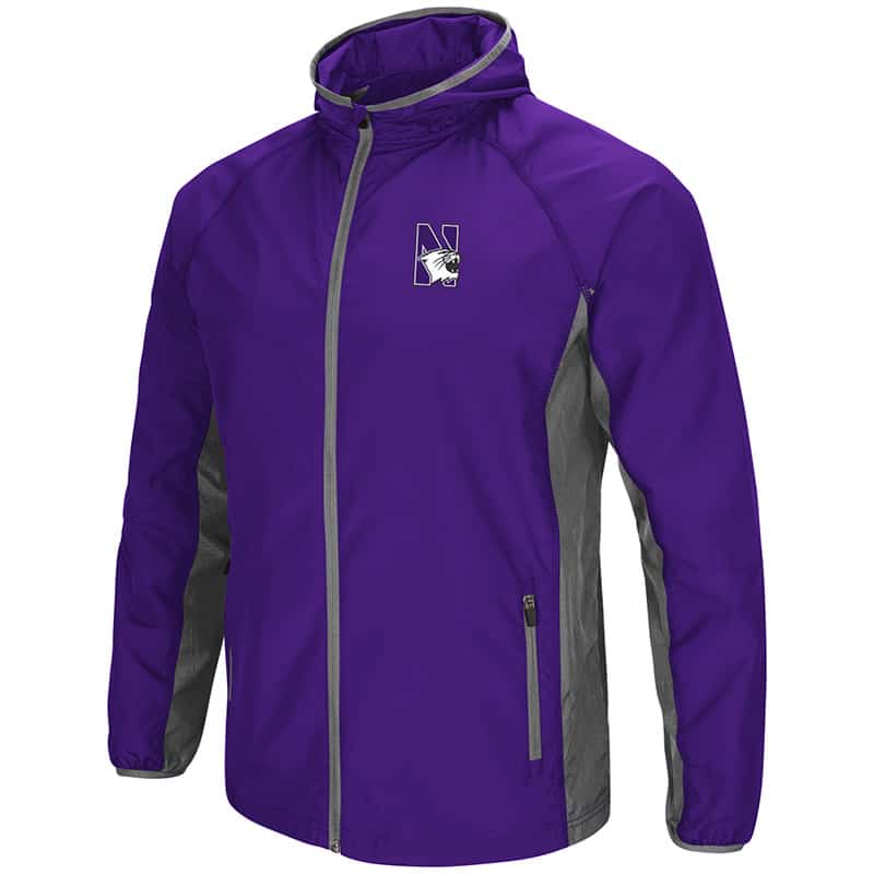 Northwestern University Wildcats Colosseum Men’s Purple/Charcoal Archer Full Zip Hooded Jacket with N-Cat Design
