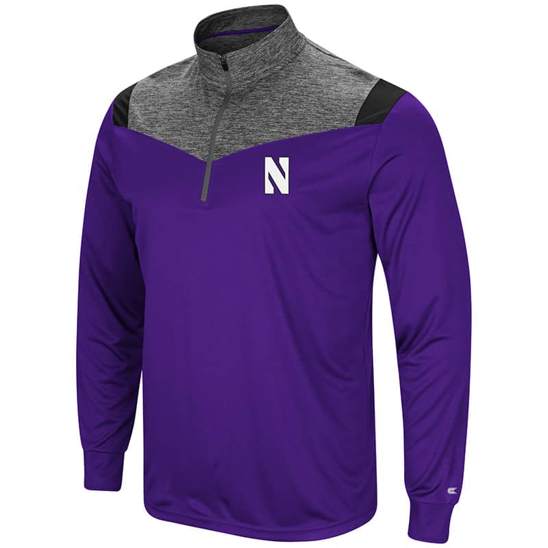 Northwestern University Wildcats Colosseum Men’s Purple/Heather Charcoal/Black Championship Trophy 1/4 Zip Windshirt with Stylized N Design