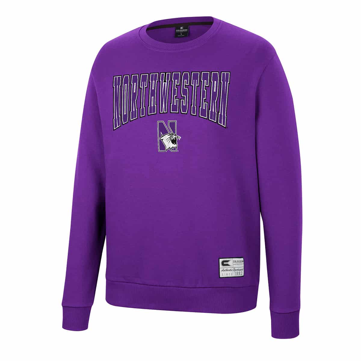 Northwestern University Wildcats Colosseum Men’s Purple Scholarship Crewneck Fleece With Northwestern and N-Cat Design